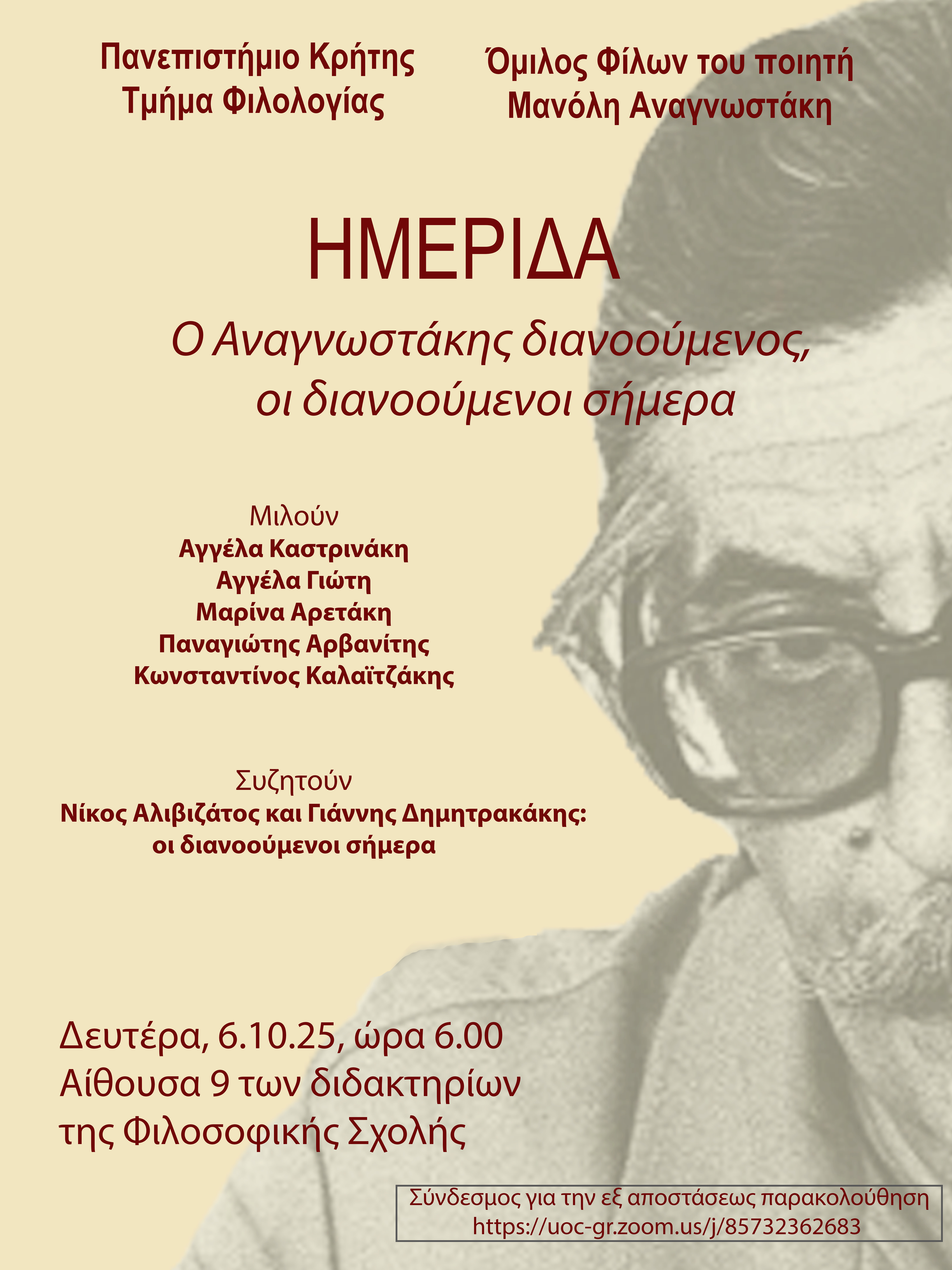 ΘΕΜΑ: Ημερίδα: Ο Αναγνωστάκης διανοούμενος, οι διανοούμενοι σήμερα (6/10/2025, 18:00)