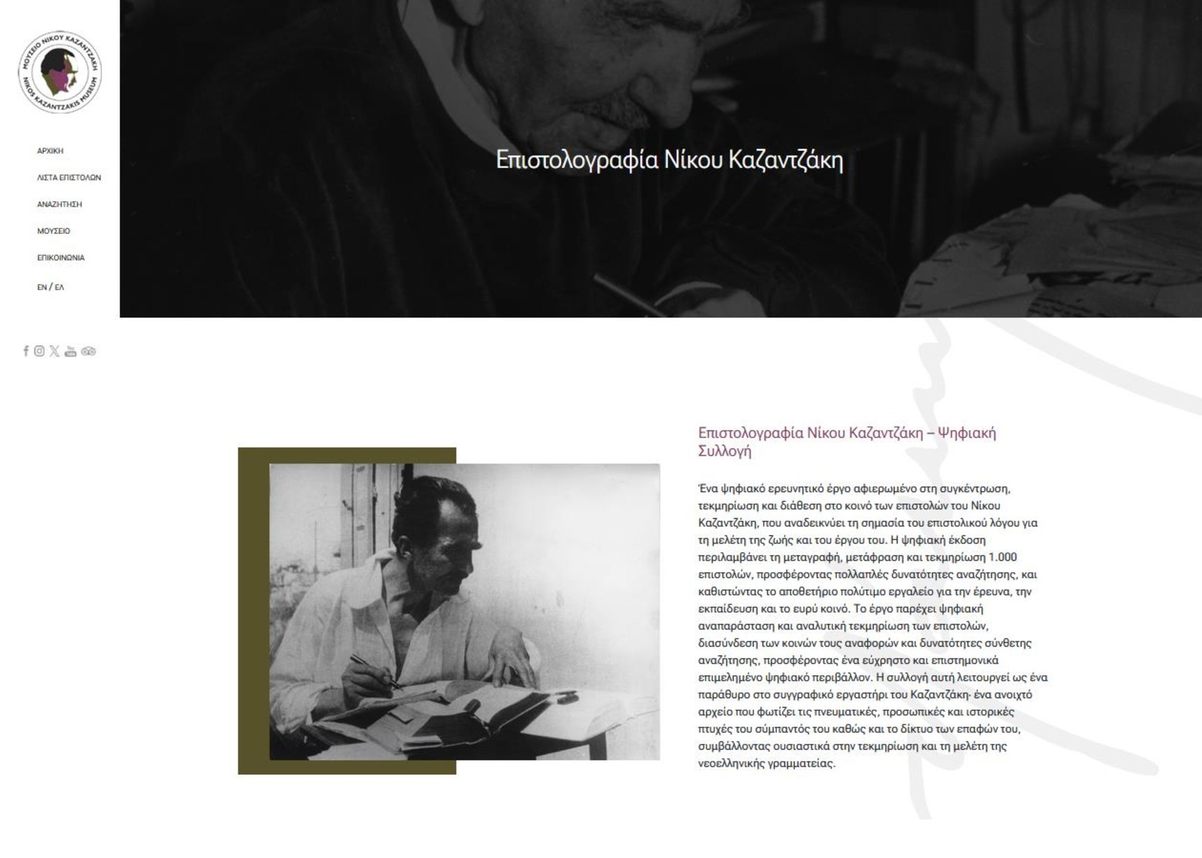 ΘΕΜΑ: ΜΝΚ_Δ.Τ._1.000 επιστολές του Καζαντζάκη ελεύθερες στο διαδίκτυο ΑΠΟΣΤΟΛΕΑΣ: Τμήμα Δημοσίων Σχέσεων ΠΚ <giota.diamanti@xxxxxx> Δείτε τα σχετικά αρχεία που βρίσκονται στις παρακάτω υπερ-συνδέσεις : https://news.uoc.gr/news/2025/18-11/ΜΝΚ_Δ.Τ._νέα_Ψηφιακή_Συλλογή_του_ΜΝΚ.pdf https://news.uoc.gr/news/2025/18-11/1.jpg https://news.uoc.gr/news/2025/18-11/3_(3).jpg https://news.uoc.gr/news/2025/18-11/letters_NK_1.jpg https://news.uoc.gr/news/2025/18-11/MNK_letters_2.jpg Αξιότιμε/η κύριε/α, Με μεγάλη τιμή και χαρά το Μουσείο Νίκου Καζαντζάκη ανακοινώνει την επιτυχή ολοκλήρωση του έργου «Επιστολογραφία Νίκου Καζαντζάκη – Ψηφιακή Συλλογή», που πραγματοποιήθηκε στο πλαίσιο του τοπικού προγράμματος Leader Αναπτυξιακής Ηρακλείου. Το έργο αφορά στην ψηφιακή έκθεση 1.000 επιστολών του Νίκου Καζαντζάκη οι οποίες είναι πλέον διαθέσιμες ελεύθερα στην ιστοσελίδα του Μουσείου, στο letters.kazantzaki.gr. Το letters.kazantzaki.gr αποτελεί ένα σύγχρονο ψηφιακό ερευνητικό έργο που αναδεικνύει τον καθοριστικό ρόλο του επιστολικού λόγου στη μελέτη της ζωής και του έργου του Νίκου Καζαντζάκη. Προσφέρει ολοκληρωμένη ψηφιακή αναπαράσταση και τεκμηρίωση των επιστολών, διασύνδεση των κοινών αναφορών τους και εξελιγμένες δυνατότητες αναζήτησης μέσα από ένα εύχρηστο και επιστημονικά τεκμηριωμένο περιβάλλον. Παράλληλα, διαθέτει ένα δυναμικό εργαλείο ελεύθερης αναζήτησης, που επιτρέπει στον χρήστη να εντοπίζει λέξεις, φράσεις και θεματικές μέσα στο σύνολο των επιστολών, τόσο στα ελληνικά όσο και στα αγγλικά. Με εκτίμηση Κλεάνθη Κριθίνου – Kleanthi Krithinou Υπεύθυνη Επικοινωνίας Μουσείου Νίκου Καζαντζάκη Μόνιμη Έκθεση Μουσείου Νίκου Καζαντζάκη Head of Communications-The Nikos Kazantzakis Museum Permanent Exhibition- The Nikos Kazantzakis Museum Ιστορικός BA, Φιλόλογος MAc - Πανεπιστημίου Κρήτης Historian BA, Philologist MAc - University of Crete Tel. +30 2810 741689, +306978724406