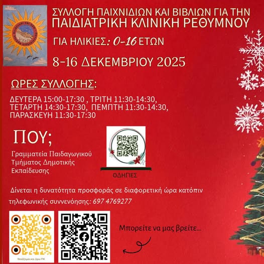 Στο πλαίσιο αυτό, συγκεντρώνουμε βιβλία και παιχνίδια για παιδιά όλων των ηλικιών, από 8 έως 16 Δεκεμβρίου 2025.