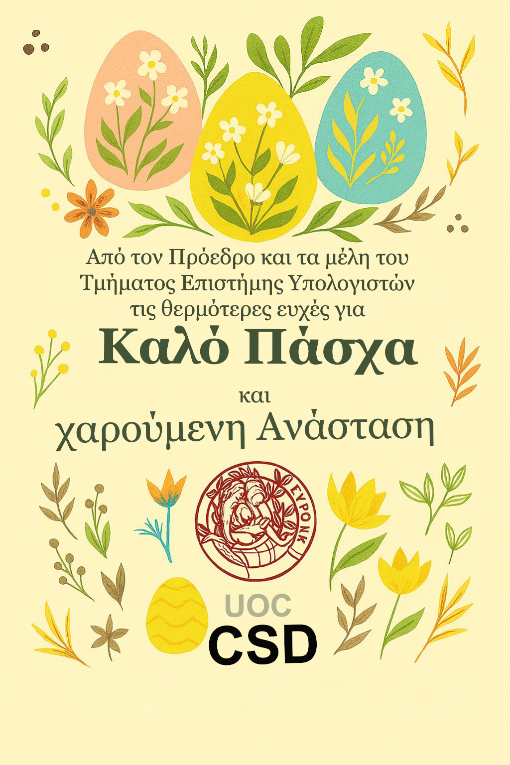 ΘΕΜΑ: Πασχαλινές Ευχές από το Τμήμα Επιστήμης Υπολογιστών