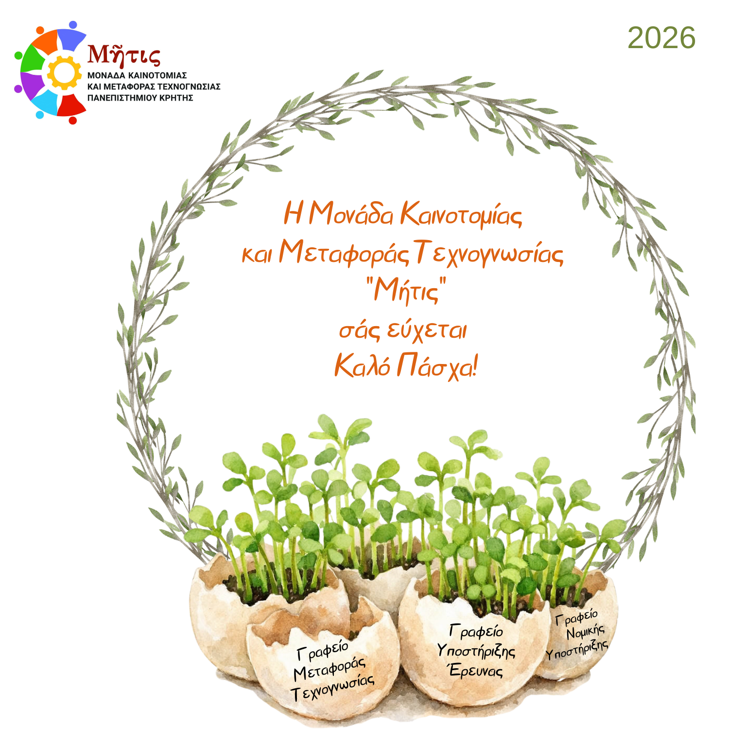 ΘΕΜΑ: Πασχαλινή κάρτα από τη Μονάδα Καινοτομίας και Μεταφοράς Τεχνογνωσίας "Μήτις" ΑΠΟΣΤΟΛΕΑΣ: Μονάδα Καινοτομίας και Μεταφοράς Τεχνογνωσίας "Μήτις" Παρακαλούμε δείτε το σχετικό αρχείο: https://news.uoc.gr/news/2026/06-04/Easter_Card_Metis_UoC_2026.png Η Μονάδα Καινοτομίας και Μεταφοράς Τεχνογνωσίας "Μήτις" σάς εύχεται καλό Πάσχα με υγεία! |